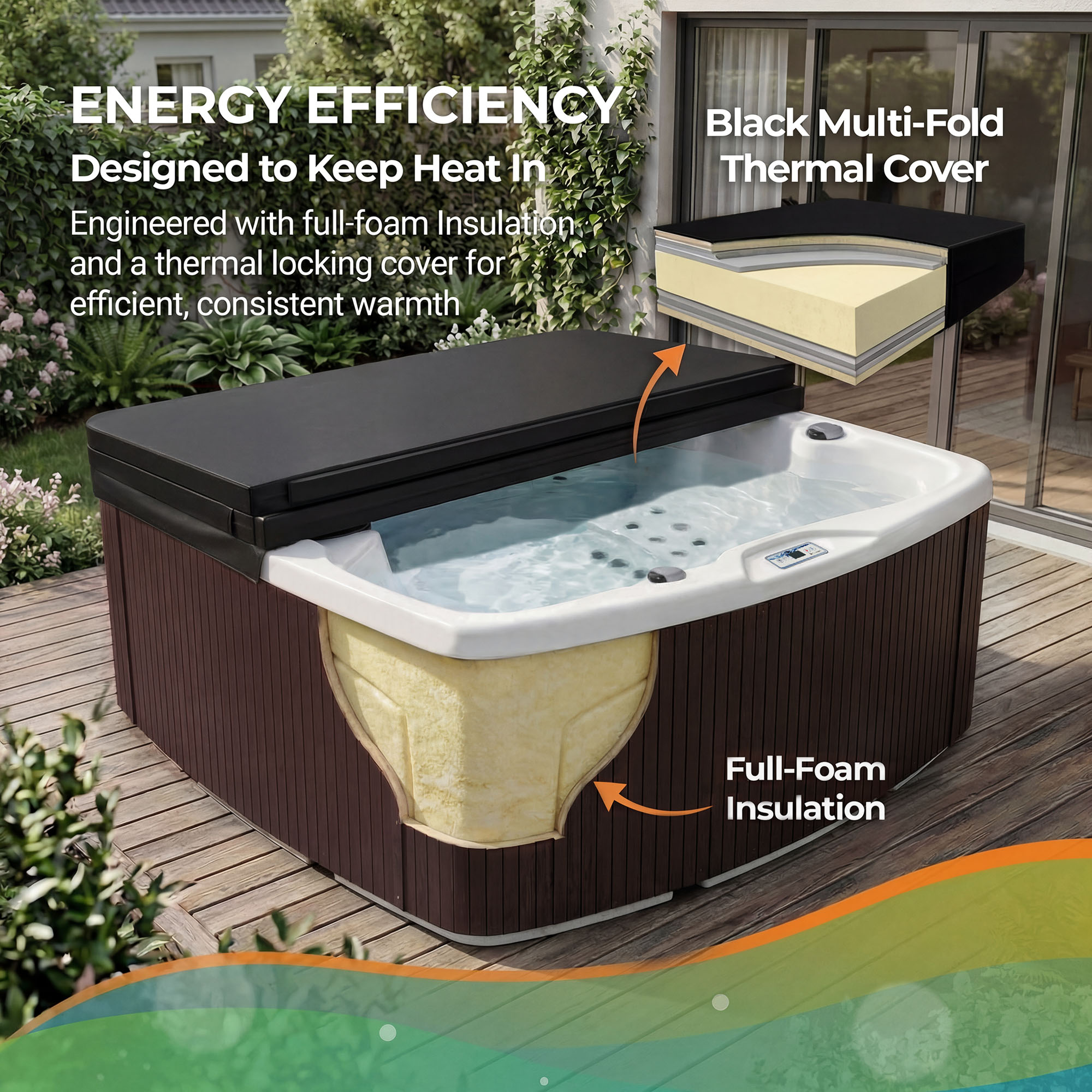 Lifesmart Spas are energy efficient, so there is no need to turn the temperature down while not in use. Full foam insulation and included thermal locking cover will keep the heat in and the electric bill low, so you can enjoy your new spa for years to come. Rest easy knowing that Lifesmart Spas are certified to the APSP 14 National Standard and the California Energy Commission (CEC) in accordance with California Law.