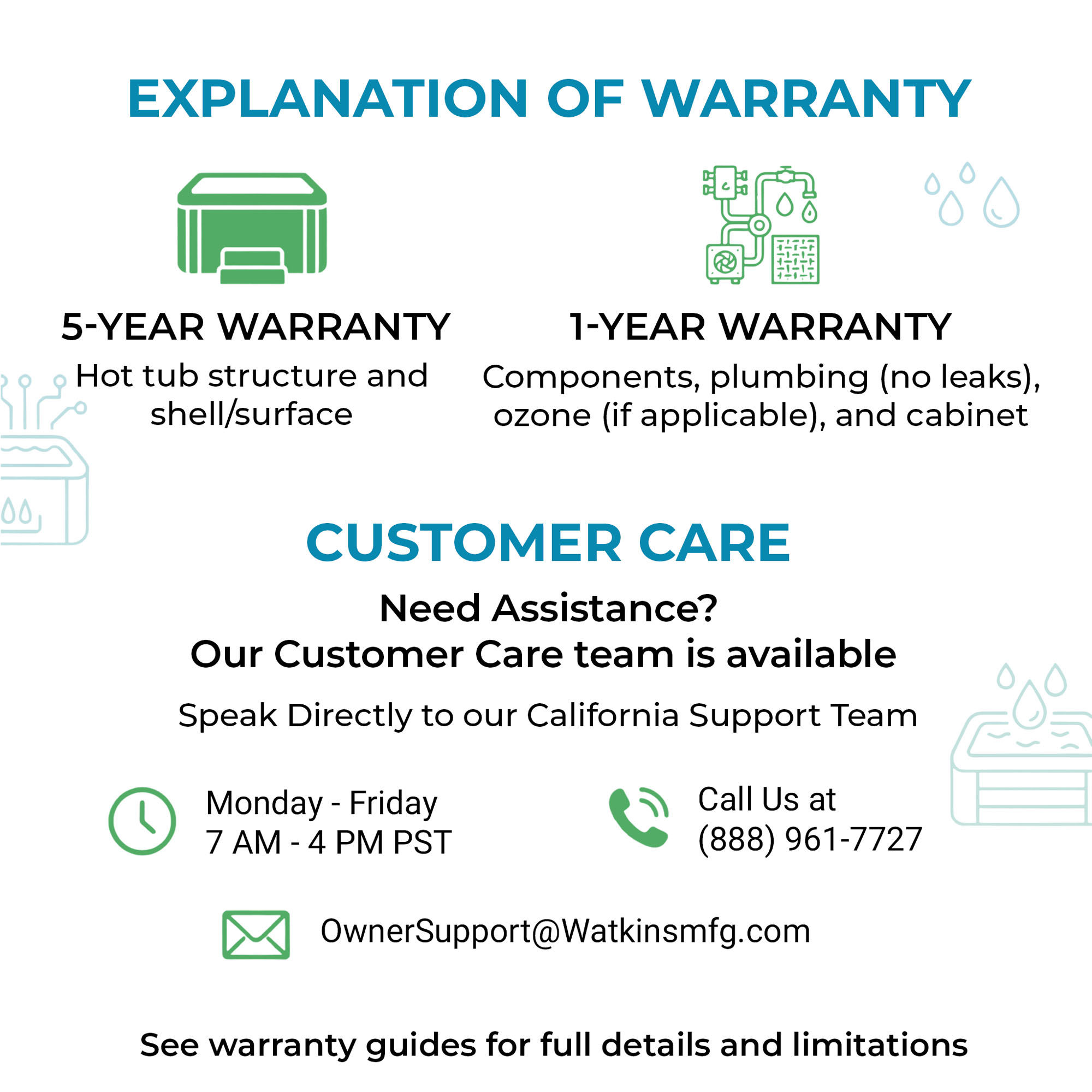 Manufacturer Warranty–1 Year Labor; 1 Years Parts; 5 Years Structure/Shell/Surface