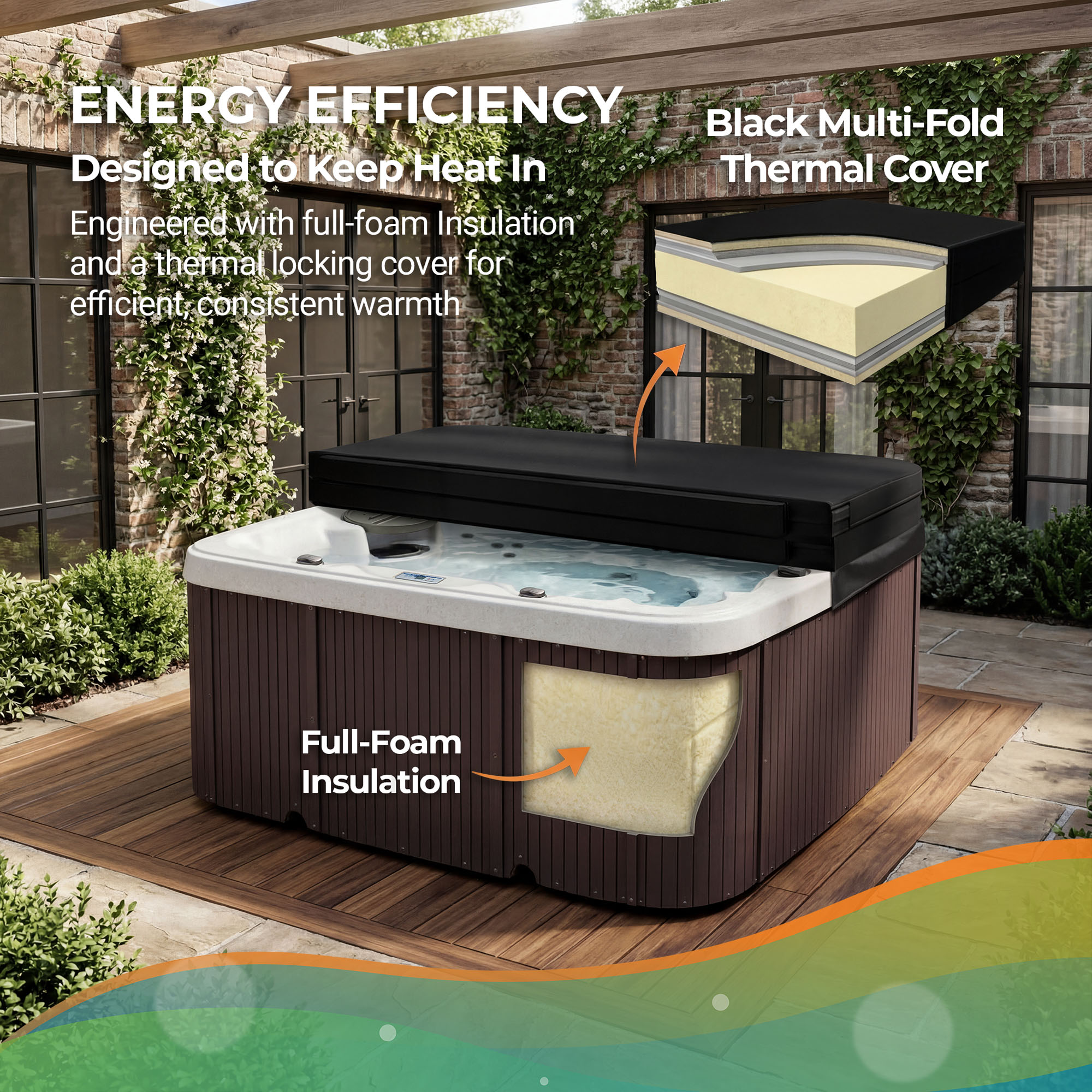 Lifesmart Spas are energy efficient, so there is no need to turn the temperature down while not in use. Full foam insulation and included thermal locking cover will keep the heat in and the electric bill low, so you can enjoy your new spa for years to come. Rest easy knowing that Lifesmart Spas are certified to the APSP 14 National Standard and the California Energy Commission (CEC) in accordance with California Law.